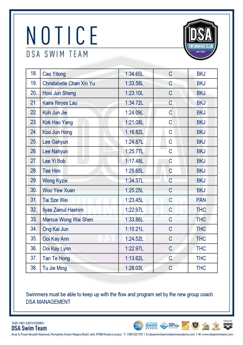 Test Set Qualifiers – August 2023 Promotion of Training Groups – August 2023 Squad Training Change – Junior Splash Leg-2 Post navigation ← Older posts Newer posts →