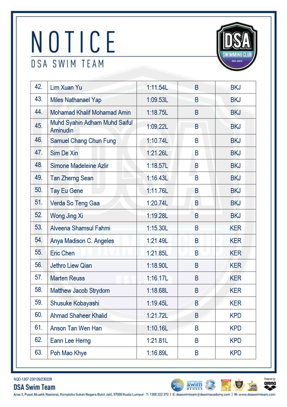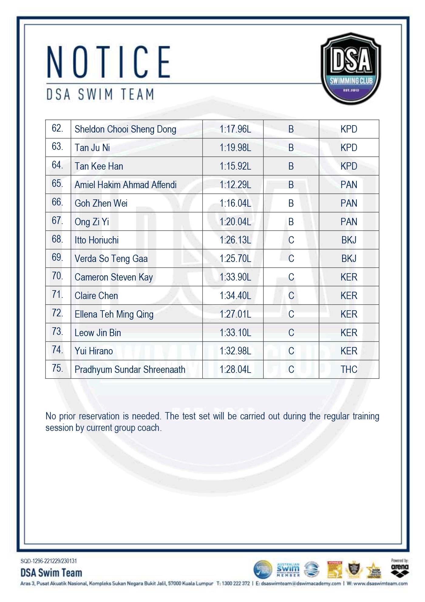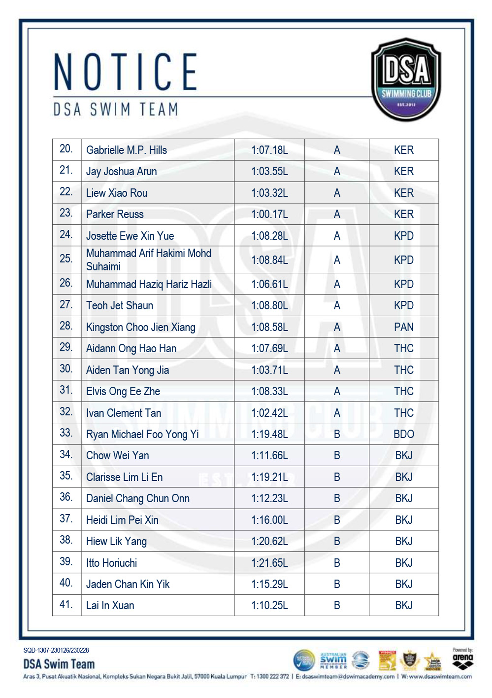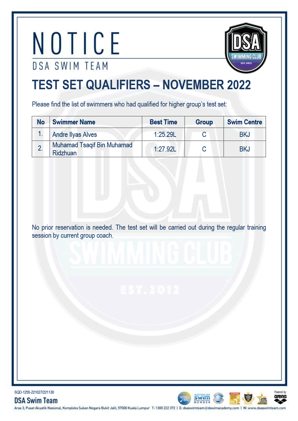Test Set Qualifiers – March 2023 Promotion of Training Group – February 2023 Test Set Qualifiers – February 2023 Promotion of Training Groups – January 2023 Test Set Qualifiers – January 2023 Promotion of Training Groups – December 2022 Promotion of Training Groups – November 2022 Test Set Qualifiers – November 2022 Promotion of Training Groups – October 2022 Post navigation ← Older posts Newer posts → SWIM MEETS & EVENTS 20262021-2025 20252024202320222021 Back 2016-2020 20202019201820172016 Back 2013-2015 201520142013 Back Back UPDATES NOTICE-BOARDTEAM NEWS NEWS ARCHIVES Back GALLERY 20262021-2025 20252024202320222021 Back 2016-2020 20202019201820172016 Back 2013-2015 201520142013 Back Back Back HANDBOOK/APPLICATION SQUAD HANDBOOKDEFERMENT FORMPRIVATE STROKE CORRECTION FORMSWIM CENTRE SWITCH FORM Back ABOUT DSA DSA SWIM TEAM PATHWAYTRAINING CALENDARDSA SPORTSCARENEED-BASED SCHOLARSHIPSCONTACT Back