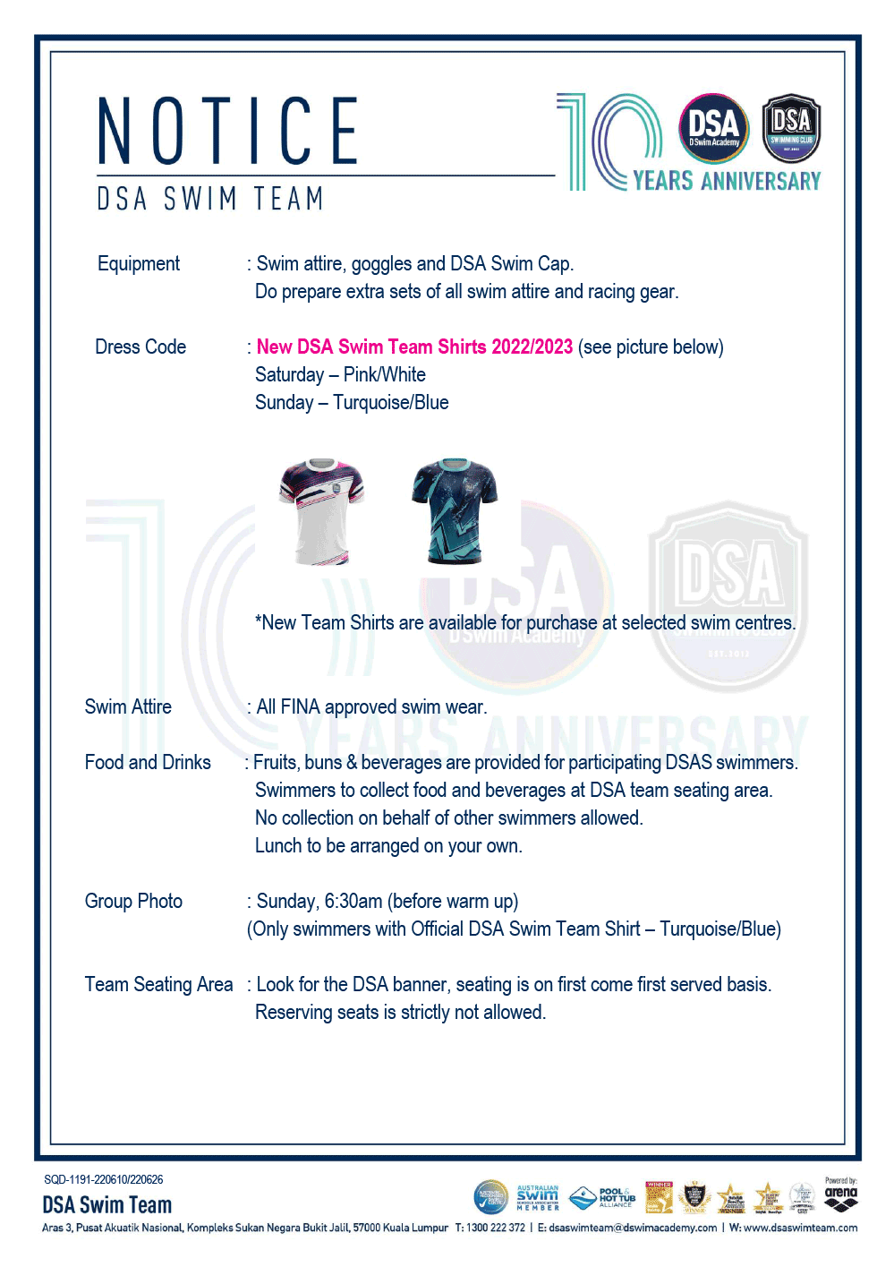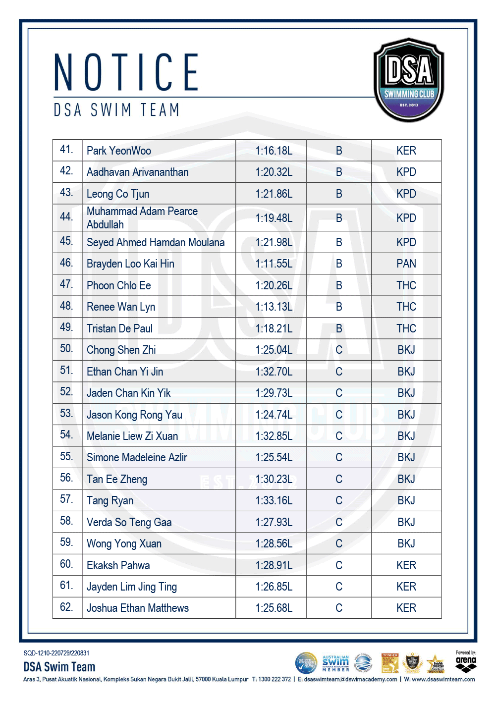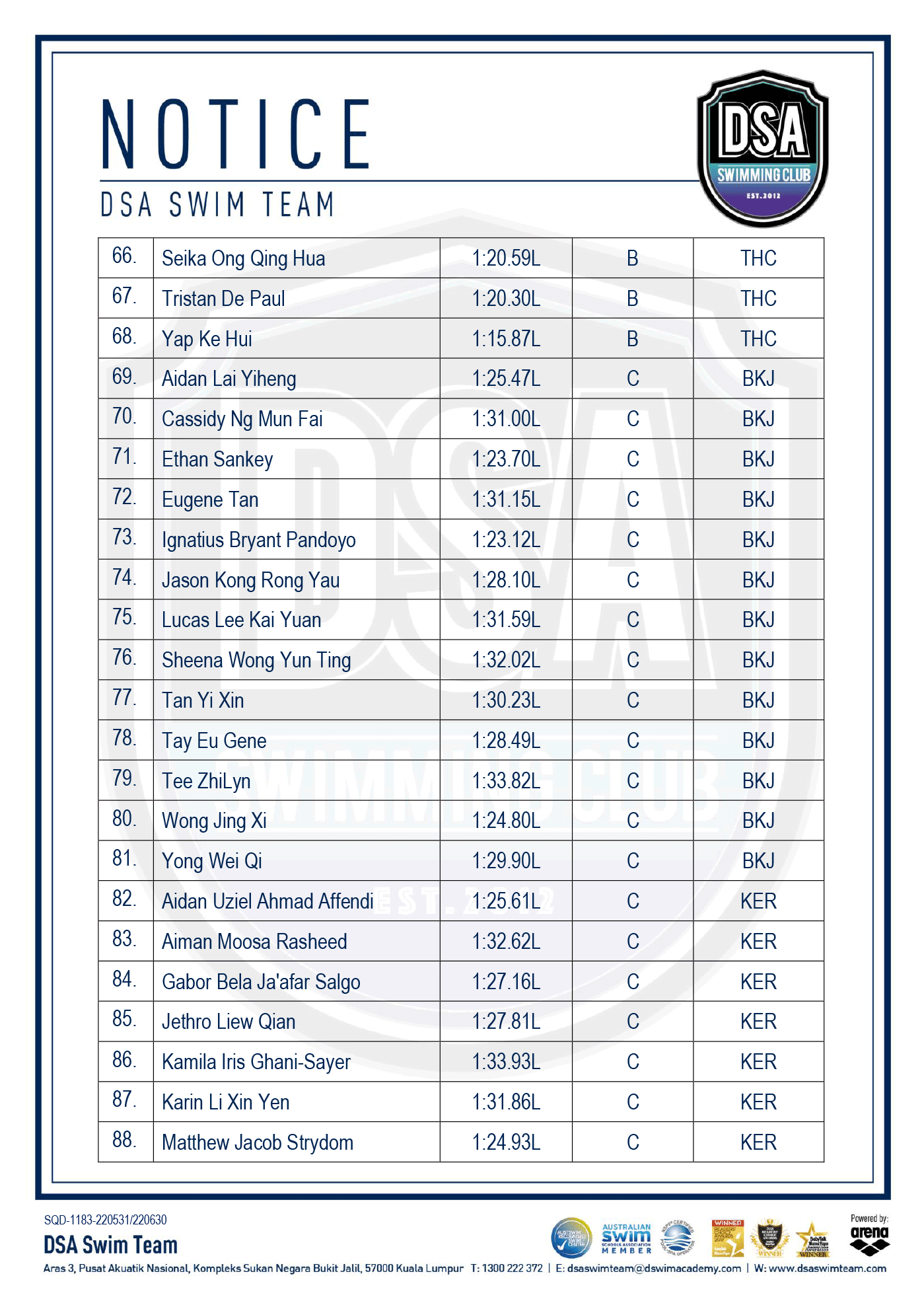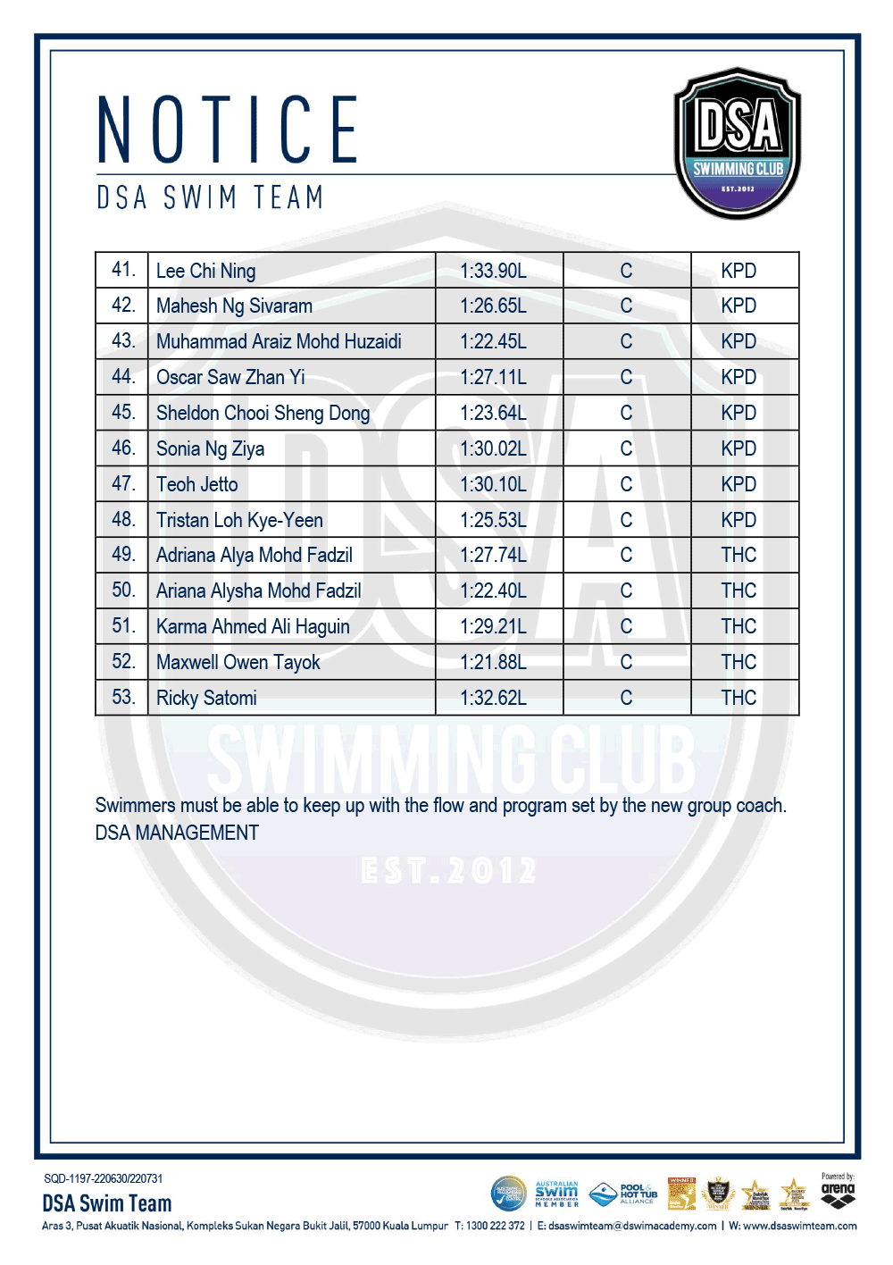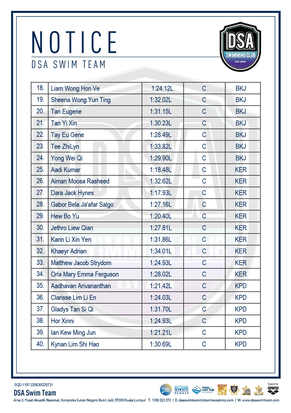 DSA Info Pack & SOP – Junior Splash Swim 2022 Bukit Jalil Squad Training Change – Amended Test Set Qualifiers – June 2022 Promotion of Training Groups – June 2022 Post navigation ← Older posts Newer posts →